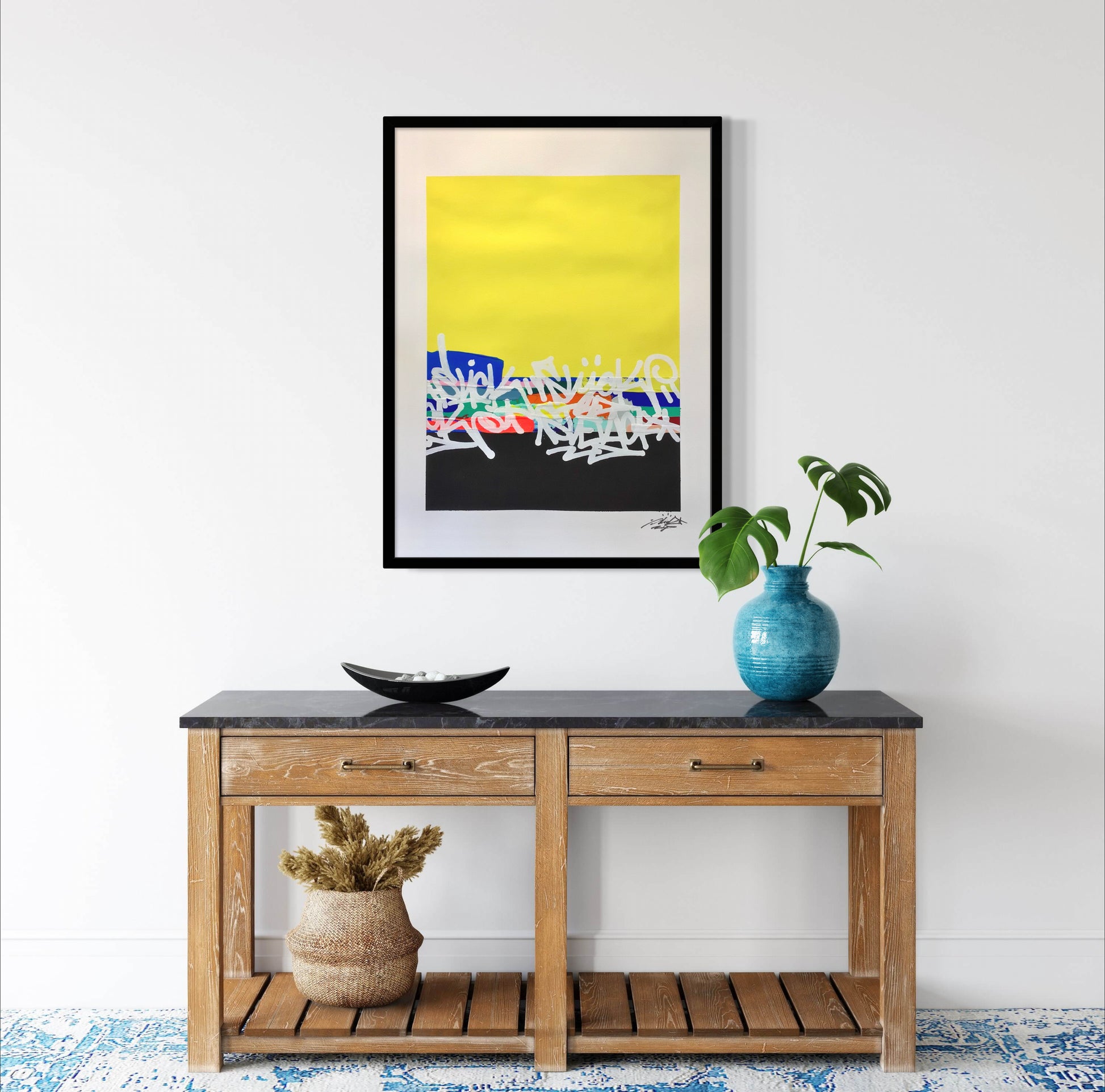 Oeuvre originale et unique de la série "Traits Sauvages", réalisée par Oneslickone. Cette peinture utilise des vinyliques et pigments appliqués sur un papier 100 % coton de haute qualité, offrant une texture et une durabilité exceptionnelle. Le format de 76 x 56 cm (29,9 x 22 pouces) permet une présence visuelle marquante, idéale pour les amateurs d’art contemporain. L’œuvre est livrée non encadrée, laissant la liberté de choisir un encadrement adapté à votre intérieur.