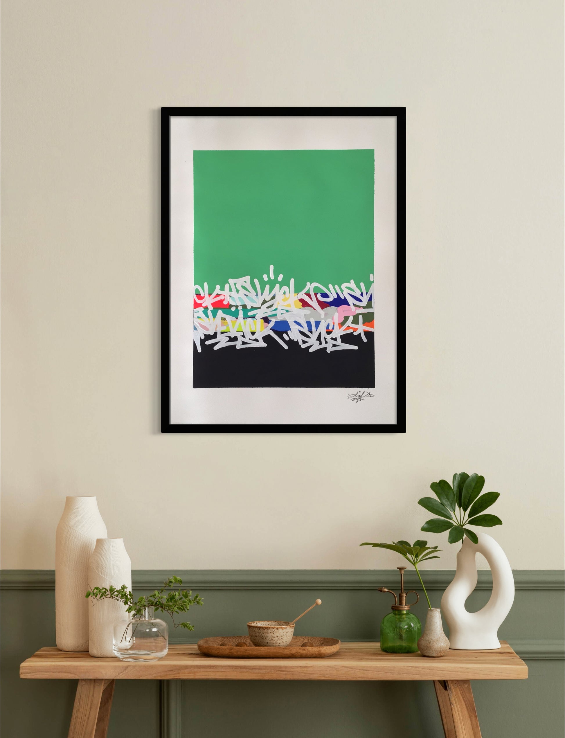 Oeuvre originale et unique de la série "Traits Sauvages", réalisée par Oneslickone. Cette peinture utilise des vinyliques et pigments appliqués sur un papier 100 % coton de haute qualité, offrant une texture et une durabilité exceptionnelle. Le format de 76 x 56 cm (29,9 x 22 pouces) permet une présence visuelle marquante, idéale pour les amateurs d’art contemporain. L’œuvre est livrée non encadrée, laissant la liberté de choisir un encadrement adapté à votre intérieur.